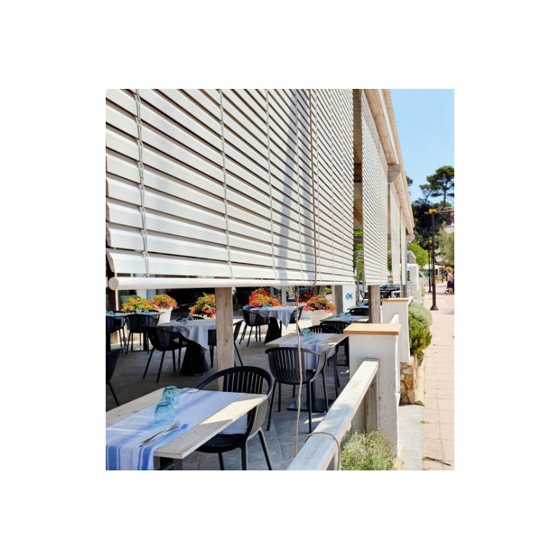 Le store enrouleur en bois Persiana Barcelona est la réinterprétation design de la traditionnelle persienne alicantine.